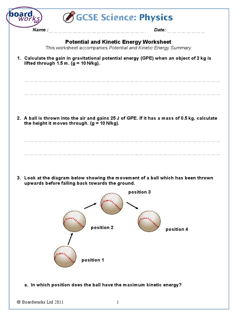 This activity will prepare students to solve simple problems including kinetic and potential energy calculations. By completing this activity 9th grade science students will learn to calculate k e. This potential and kinetic energy worksheet is suitable for 9th 12th grade. Potential and kinetic energy. Some of the worksheets for this concept ...