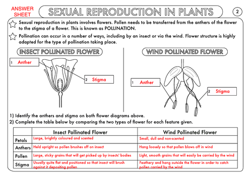 26. $4.00. Zip. This pack of three worksheets focuses on sexual reproduction in plants, perfect for high school biology students. Each worksheet should take approximately 10-15 minutes to complete and can be completed independently by students.The pack includes:Worksheet 1: Covers the structure of insect-pollinated.