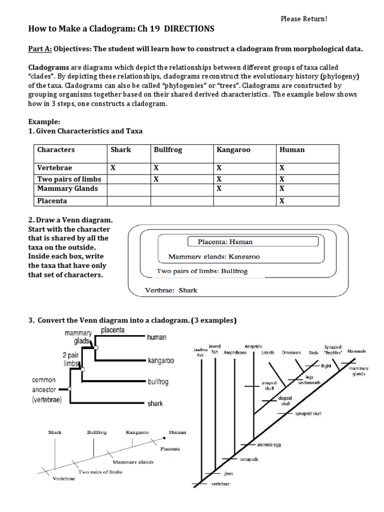 Cladogram worksheet step 1. Students will draw a cladogram of the hiv virus in order to solve a real attempted murder case. Has a vertebral column. Construct a cladogram and answer the following questions on separate paper. A large aquatic vascular plant about 200 million years old b. This is a great dna sequence acti.