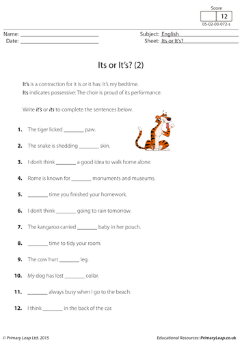 Its or it's? Worksheet with a range of activities. Rating: 4,6 · 23 reviews · Free · In stock