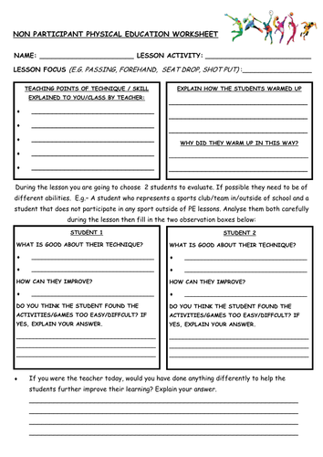 no Physical Education teacher available to take a practical class and pupils are sent to a classroom. It is hoped the worksheets will allow for meaningful.24 pages