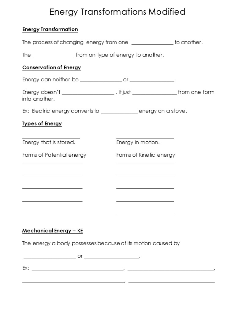 November 7, 2021 on Energy Transformation And Conservation Worksheet Answer Key. 4ourth Grade Transfer Of Energy Worksheet Q4old Mrs Bhandari S Grade 7 Science Science Worksheets Energy Transformations Free Science Worksheets. 5 1 What Is Energy Work Power And Energy Guided Notes What Is Energy Work Energy And Power Energy Work.