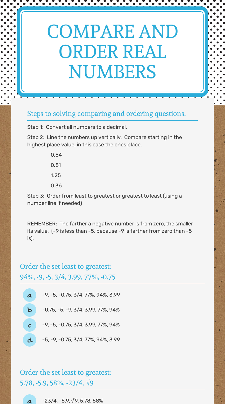 Comparing real numbers worksheet