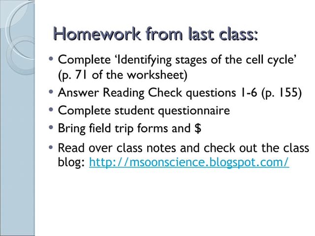 5.1 cell division and the cell cycle worksheet answers. 5.1. Cell Division and the Cell Cycle www.ck12.org FIGURE 5.5 These cells are cancer cells, growing out of control and forming a tumor. • The cell cycle is a repeating series of events that cells go through. It includes growth, DNA synthesis, and cell division. In eukaryotic cells, there are two growth phases, and cell division includes mitosis. Anatomy and Physiology. Anatomy and Physiology questions and answers. Worksheet 5 Cell Division 1. Cell cycle: list the different stages in correct order 2. DNA replicates during which stage of the cell cycle. 3. List the different phases of mitosis in correct order. 4. Label the diagram: centromere, sister chromatids, homologous chromosomes. Cell division in prokaryotes includes mitosis. The cell cycle in prokaryotes includes DNA replication. Interphase consists of the G1, S, and M phases of the cell cycle. The first phase of cell division is the G1 phase. The cell cycle has three checkpoints: the G1 checkpoint, the S checkpoint, and the G2 checkpoint. The cell cycle is the regular pattern of growth, DNA duplication, and cell division that occurs in eukaryotic cells. FIGURE 5.1 shows its four main stages: gap 1, synthesis, gap 2, and mitosis. Gap 1, synthesis, and gap 2 together make up what is called interphase. The stages of the cell cycle get their names from early studies of cell division.