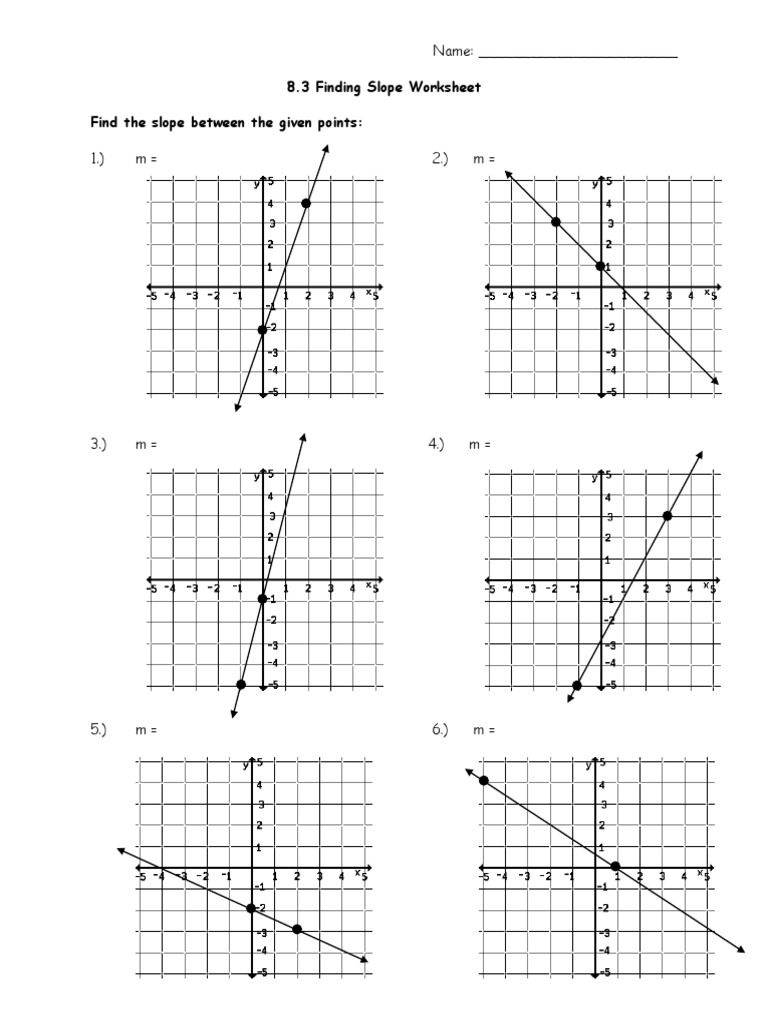 Find slope from two points worksheets for 6th grade 7th grade and 8th grade1. Finding slope worksheets. Based on the two points plotted on a graph calculate the rise and run to find the slope of the line in the first level of worksheets. This is a two page worksheet. Find the slope of a line finding slope 1 finding slope 2.