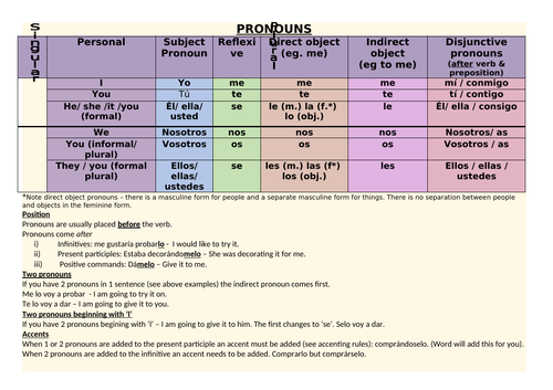 PDF Spanish: Direct, Indirect, and Reflexive Pronouns This worksheet is to be used in conjunction with "Mosaicos" and "Fuentes" Provided by the Academic Center for Excellence 4 Spanish: Direct, Indirect, and Reflexive Pronouns R.I.D. Reflexive, Indirect Object Pronoun, Direct Object Pronoun Spanish Subject Pronouns: Chart, Sentences and Practice ... Spanish subject pronouns or personal pronouns are words used to replace a noun (un sustantivo) so they can function as the subject of a sentence. Generally speaking, they give us information about the subject, including its gender (masculine/feminine) and number (singular/plural) . Possessive and Personal Pronouns (altogether) - English Exercises pronouns exercise. I´ve mixed up the different personal pronouns and possessives so that the students can practise them, as it is a very common mistake in writing maybe due to their confusing and similar forms. Personal Pronouns online pdf activity for Beginner Main content: Personal Pronouns Other contents: Subject Pronouns Add to my workbooks (1910) Download file pdf Embed in my website or blog Add to Google Classroom Add to Microsoft Teams Share through Whatsapp