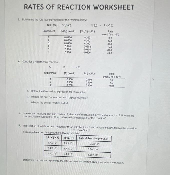 Rates Of Reaction Worksheet — excelguider.com A Rates Of Reaction Worksheet is some short questionnaires on a precise topic. A worksheet can be ready for any subject. Topic should be a complete Worksheet works extremely well for revising this issue for assessments, recapitulation, helping the scholars to comprehend the topic more precisely...