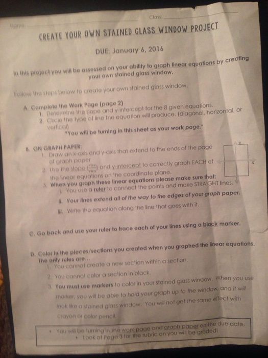 Stained Glass Window Linear Equation Worksheet Answers Stained Glass Windows Worksheet Hello Learning Slope Stained Glass Window Project Math Worksheet Window Projects Graphing 4 hours ago Stained glass window is a project that requires students to graph linear equations in order to create a colorful yet mathematical display window. Stained Glass Window Linear Equations Worksheet - Worksheet List Stained glass math activity linear equations project stained glass window you graphing linear equations quilt project worksheet answers 342237 stained Stained glass window displaying top 8 worksheets found for this concept. This visualkinesthetic project will help students to clearly identify...