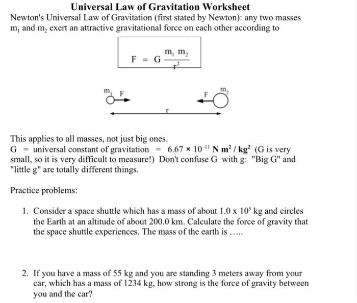 DOCX Socorro Independent School District / Homepage Universal Law of Gravitation Worksheet. Newton's Universal Law of Gravitation (first stated by Newton): any two masses m. 1 and m 2. exert an attractive gravitational force on each other according to Author: Windows User Created Date: 10/23/2015 08:09:00 Last modified by: