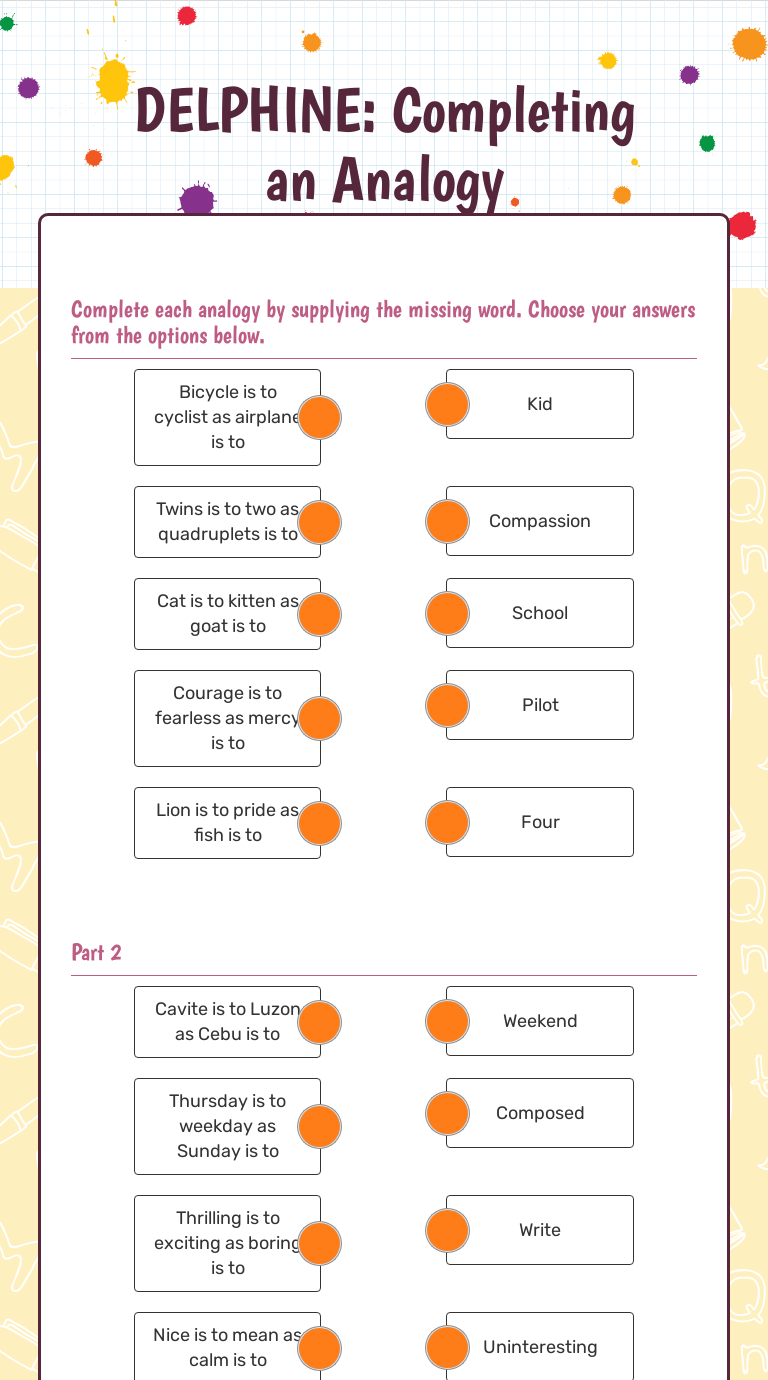 analogies worksheet - WorkSheets and Kindergarten Analogies Worksheets. Analogies interactive worksheet analogy englishlinx com worksheets education have fun teaching tim s printables fill online for 6th 8th grade multiple choice g7 animal 4th english treasure land ahoy 1 free printable picture we re related awesome math activity language arts puzzle page 8 of 13 esl by mclonmart kids mocomi answer key lesson tutor world 5 2 an 9th came 2nd ...
