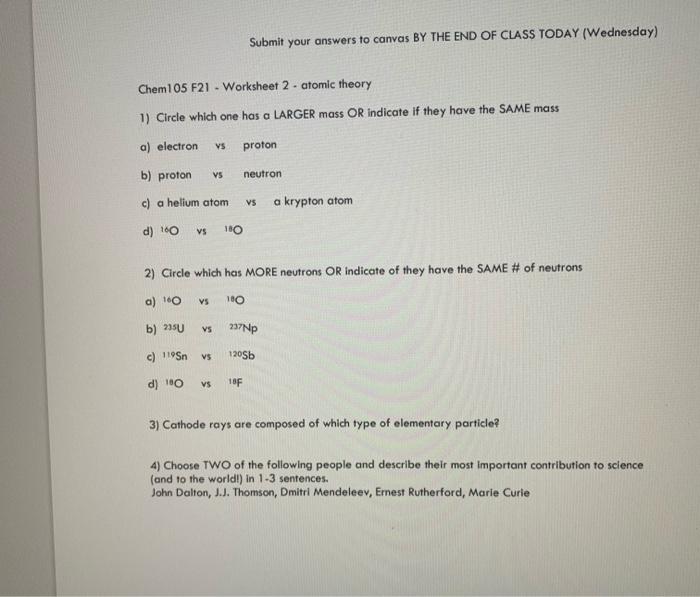 Atomic theory worksheet answers