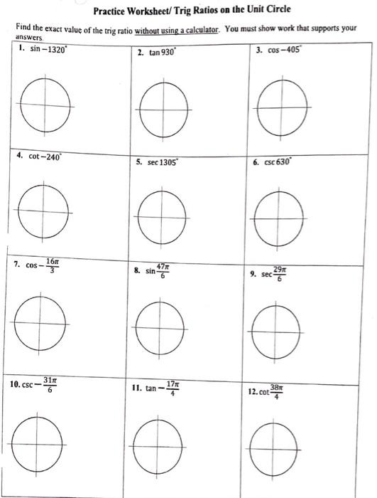 Unit circle worksheet a answer key. The Unit Circle Teaching Resources | Teachers Pay Teachers This can be used with a unit circle or without. Print out the 15 problems and place them around your room. Give each student an answer worksheet and assign them a place to start. You can do this individually or in pairs. The answer they get will lead them to their next problem. Unit Circle Worksheet With Answers Sep 26, 2021 · Unit Circle Worksheet With Answers. Unit Circle Worksheet With Answers. Encouraged to be able to the website, in this particular time period I am going to demonstrate in relation to Unit Circle Worksheet With Answers. Think about picture above? is that awesome???. if you believe so, I'l m demonstrate several image again under: So, if you desire to secure these Honors Algebra 2 Unit 4 Circle Worksheet Answer Key PDF Download Algebra 2 Circles Worksheet Answers. Honors Algebra 2: Unit 4 Circle Worksheet Name _____ Period: ____ Note: If r2 is not a perfect square then leave r in simplified radical form but use the decimal equivalent for graphing. Step-by-step solutions to all your Algebra 2 homework questions - Slader PDF Unit Circle Worksheet Answer Key said, the unit circle worksheet answer key is universally compatible once any devices to read. Mr. Yehlen's Trig Values of The Unit Circle Worksheet Video Answer Key The Unit Circle Explanation/Practice Problems Worksheet 3.1 Unit Circle Unit Circle Trigonometry - Sin Cos Tan - Radians \u0026 Degrees Unit Circle Practice
