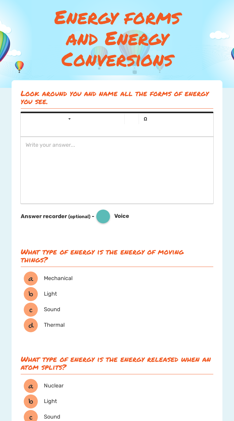 2.07 Help Worksheet | Energy transformations, Teaching energy... 2.07 Energy Conversions Please fill in the blanks below. The energy types you learned about are Potential, Kinetic, Chemi... States of Matter Sorting Worksheet Google Slides - Digital Version IncludedTHIS RESOURCE INCLUDES:Sorting Mat and Sorting Pictures Answer KeyGoogle Slides... 27 Energy Conversion Worksheet Answers - Worksheet Information Energy Conversion and Conservation Worksheet Answers 5 2. Worksheet May 03, 2018 20:30. The Energy Conversion and Conservation Worksheet, as the name suggests, is an easy-to-use tool for those who wish to take steps to reduce their energy consumption. Worksheet Energy Conversions Gizmo Answer... - Sherrod Theemed Quiz worksheet mass energy conversion defect nuclear binding. This page is about reaction energy gizmo answer key,contains student exploration cell energy cycle (1),student exploration collision theory worksheet . Worksheets for all year 4 courses, student exploration energy conversions .