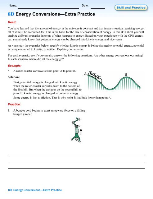 Energy Stores - GCSE Physics Worksheet Answers EXPLAINED This video explains the answers to the Energy Stores GCSE Physics Worksheet. These worksheets are very useful for revising important GCSE Physics... Section 15 2 Energy Conversion And Conservation Worksheet... At a worksheet the questions shouldn't have hundreds possible answer. Worksheet should function as a tool to better content of the child. Group of information plays a huge role in designing the Section 15 2 Energy Conversion And Conservation Worksheet Answers. Energy Conversions Worksheets Energy Conversions Worksheets. April 25, 2018. Sponsored Links. Work Power And Energy Worksheets Answers. Energy Conversions Worksheet Answer Key , Jobs EcityWorks Energy Conversion and Conservation Worksheet Answers 5 2 with Kinetic and Potential Energy Worksheet Doc Kidz Activities. If you have a set budget, it is best to cut down on all other expenses besides keeping your energy bills low; you can even generate your own power generator that could...