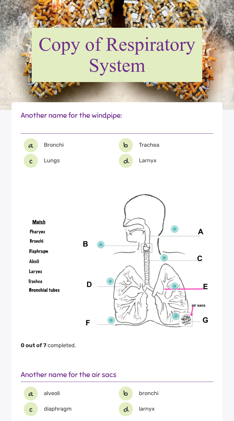 Respiratory System worksheets and online exercises All worksheets Only my followed users Only my favourite worksheets Only my own worksheets. Live worksheets > English > Science > Respiratory System.