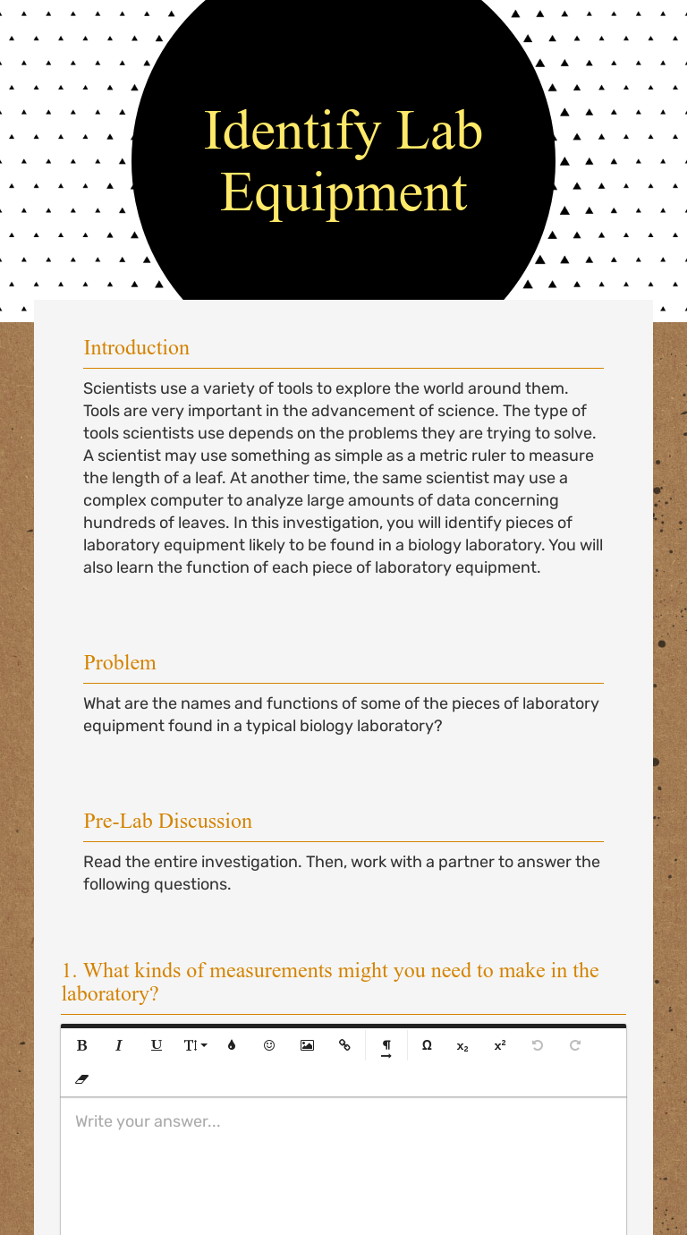 Lab equipment identification worksheet
