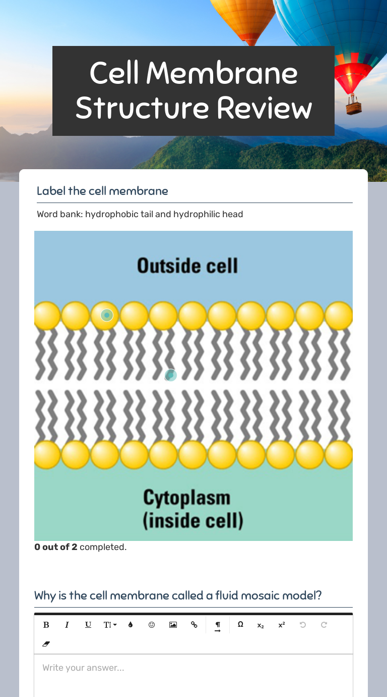 study.com › academy › practiceQuiz & Worksheet - The Fluid Mosaic Model of the Cell ... Worksheet. 1. The Fluid Mosaic Model describes parts of the cell membrane such as proteins and phospholipids as _____. bound to carbohydrates. floating laterally throughout the space. tethered to ... Components of the Cell Membrane | What is the Main ... Nov 15, 2021 · The fluid mosaic model is the accepted structural model of the cell membrane. It describes how the cell membrane is made of different …