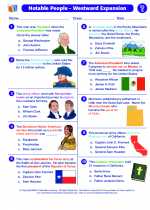 Westward Exploration and Expansion Westward Exploration and Expansion. Join Lewis & Clark, Sacagawea, Daniel Boone, pioneers, and the wagon trains headed West. Kids will be totally engaged by these mini-books, text & response sets, timelines, research and writing tools, worksheets, and map activities. TRY US RISK-FREE FOR 30 DAYS! U.S. History: Westward Expansion | Worksheet | Education.com Westward Expansion was the 19th-century movement of settlers into the American West and began with the Louisiana Purchase. This worksheet asks students to match seven Western Expansion events with a person (or the people) associated with them, making it a great companion to a fifth grade social studies or U.S. history unit on the topic.