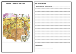 World War One Worksheets - History The Trenches A Worksheet explaining the facts and details of life in the trenches. Trench Diagram (A) An enlarged diagram of a trench to go with the worksheet above. Trench Diagram (B) An enlarged cross section of a trench to go with the worksheet above. Trench Definitions A matching exercise to test understanding of the components of a trench.