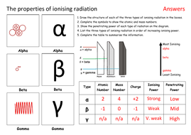 PDF Isotope Radioactive Decay (Yes or No) 9. If the half-life of iodine-131 is 4.10 days, how long will it take a 200.00 g sample to decay to 6.25 g? Use your notes packet to fill in the blanks: PDF Decay Practice Worksheet #1 13. Uranium-238 undergoes an alpha decay and produces two gamma rays. 14. The neon-22 nucleus is formed when an element undergoes a beta decay. 15. Samarium-146 is produced when an element undergoes an alpha decay. 16. The beta decay of dysprosium-165 creates a new element. Answer the following questions. Include the mass number when naming ... Radioactivity alpha/beta/gamma sheet (GCSE) | Teaching ... Great as a research activity for students - either inside or outside of class - or as a consolidation or revision task, this A4 sheet helps students keep track of what they need to know about alpha, beta and gamma radiation. Note: see the 'readme&' file for suggestions and notes on usage. Keywords: Radioactivity, Alpha, Beta, Gamma, Ionising ...