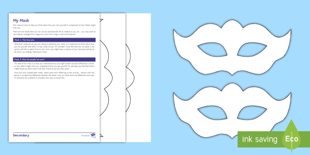 PDF THE MASKS WE WEAR Psychology 12 - WordPress.com On the outside of the mask, put the faces you show your friends, family, teachers, for example. You can show these behaviours any way you like—with pictures, poetry, colours, words/slogans/phrases, etc. On the inside of the mask, show who you really are. On the outside of the mask you may have pieces of