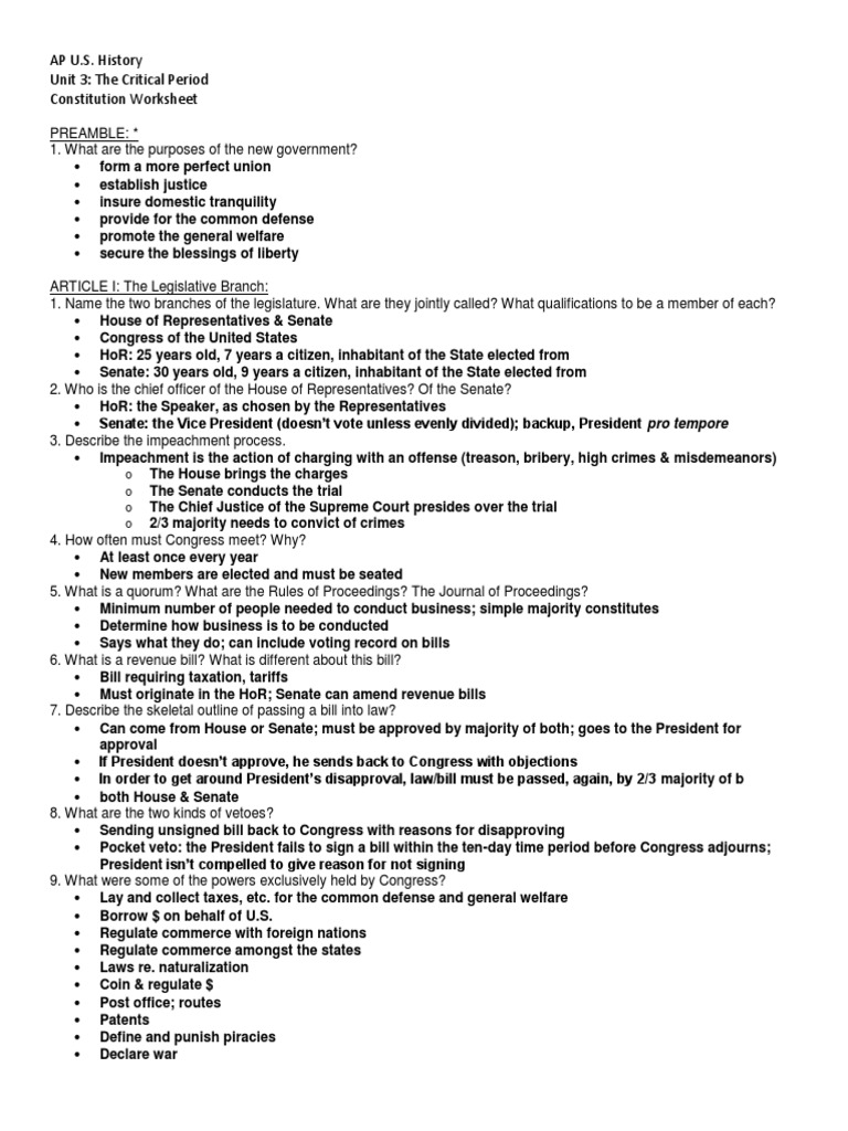 Applying the principles of the constitution worksheet answers