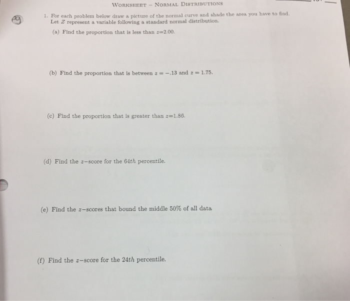 DOC Z-Score Practice Worksheet - Winston-Salem/Forsyth County ... Z-Score Practice Worksheet Name _____________________________ A normal distribution of scores has a standard deviation of 10. Find the z-scores corresponding to each of the following values: A score that is 20 points above the mean. z=2 A score that is 10 points below the mean. z=-1 A score that is 15 points above the mean z=1.5 z-scores practice worksheet - answer key (1).docx - D and ... View z-scores practice worksheet - answer key (1).docx from PSYC 3000 at Kennesaw State University. D and E? 16% z-scores Worksheet A and D? 84% Beneath the graph, label SD and PDF Z-Score Practice Worksheet - Ms. Shultis Z-Score Practice Worksheet Name _____ 1. A normal distribution of scores has a standard deviation of 10. Find the z-scores corresponding to each of the following values: a) A score that is 20 points above the mean. z=2 b) A score that is 10 points below the mean. z=-1 c) A score that is 15 points above the mean z=1.5