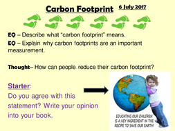 PDF Calculating Your Carbon Footprint greenhouse gas, a carbon footprint can give you an idea of how much you contribute to global warming. Think of your carbon footprint as a measure of your impact on the environment. For example, when driving a car, the engine burns fuel, which creates a certain amount of CO 2, depending on its fuel consumption and the driving distance. (CO 2 is ... PDF Activity 4.3: Calculating Your Ecological Footprint • Become familiar with the EPA carbon footprint calculator Procedure: 1. Trace a footprint with construction paper and leave it on the board in front of the class. Begin ... If you are unable to use many computers for the carbon footprint, photocopy worksheets with all the categories and have students calculate footprints without the computer. Carbon footprint calculator survey | Teaching Resources File previews. docx, 165.6 KB. Survey with questions that address a variety of aspects of your daily life and calculate a score to estimate how much carbon you produce. Includes summary questions that address how you could alter your carbon footprint, and also question the validity/accuracy of the carbon footprint survey. PDF Critical Thinking Activity: Calculating Your Carbon Footprint Have students calculate their carbon footprint individually using the carbon footprint worksheet as a guide. Review and clarify the math procedures. 3. Have the class share out their data and work together to identify the class high, low and average for both carbon saved and carbon emitted. 4. Ask students to think back to the questions asked ...