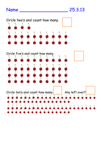 Count in 5s | Worksheets - Primary Stars Education Count in 5s | Worksheets. Year: 1. Pages: 6. Answers: Yes. Differentiated worksheets requiring children to use pictures, number tracks and number frames to help them count in 5s. Children will progress to using their knowledge of counting in 5s to complete one-step word problems. Photos.