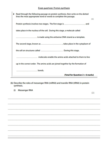 Protein Synthesis Worksheet: Definition, Examples & Practice Protein Synthesis Worksheet Practice. It's helpful to utilize practice protein synthesis worksheets. To help you, here's a list of questions-and their answers-that you're likely to find on tests, worksheets, and protein synthesis projects: During translation, which RNA carries amino acids to the ribosome? (transfer RNA or tRNA)