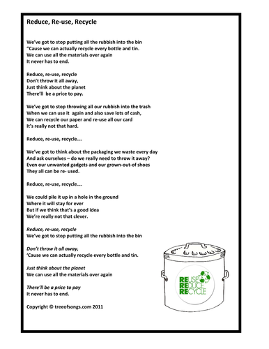 PDF Reduce, Reuse, and Recycle - Little Worksheets Reduce, Reuse, and Recycle Large amounts of garbage resulting from a consumption-driven and densely populated society have led waste managers to adopt and promote an approach to the waste problem summarized by the phrase "reduce, reuse and recycle" -- the waste hierarchy. This slogan reminds consumers of the actions they can