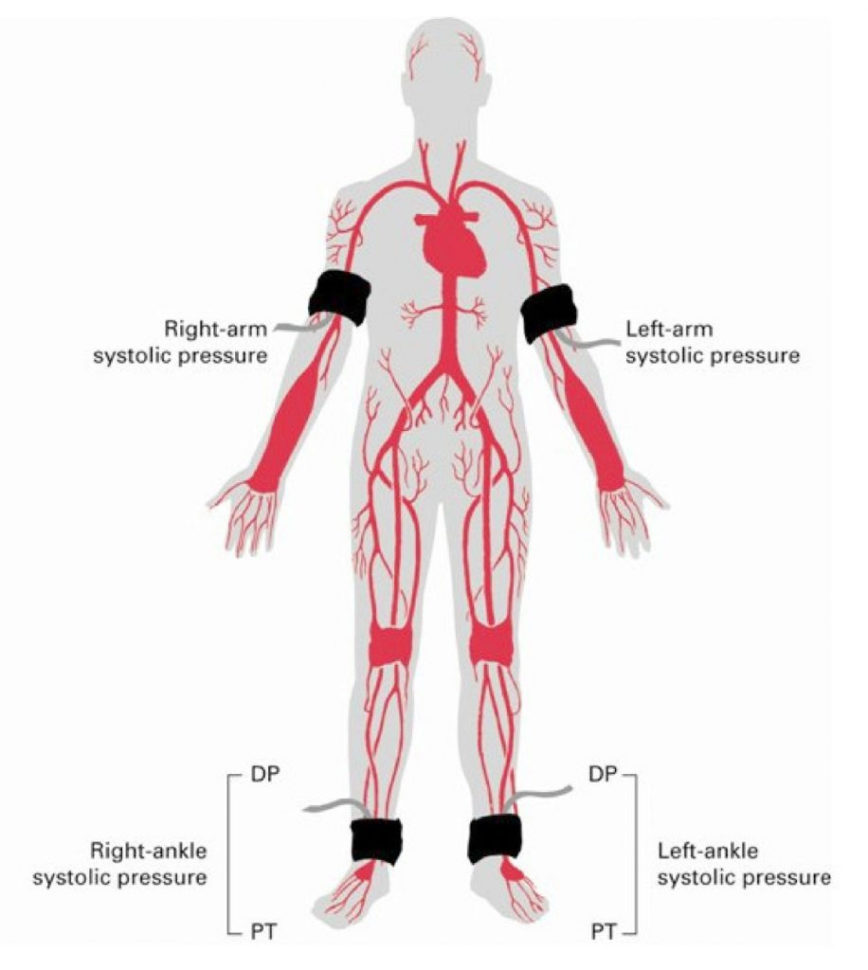 Ankle-brachial Pressure Index (ABPI) Measurement - Geeky Medics The ankle-brachial pressure index (ABPI) is a non-invasive method of assessing peripheral arterial perfusion in the lower limbs. ABPI is a ratio composed of the blood pressure of the upper arm (brachial artery) and the blood pressure of the lower limb (dorsalis pedis and the posterior tibial artery). Ankle-brachial index - Mayo Clinic An ankle-brachial index number is this range indicates that you have borderline PAD. Your doctor might recommend an exercise ankle-brachial index test. PAD (less than 0.90). An ankle-brachial index number in this range is considered abnormal and indicates a diagnosis of PAD. Your doctor may recommend additional testing, such as ultrasound or angiography, to view the arteries in your legs. Ankle Brachial Index Test | Johns Hopkins Medicine The ankle brachial index, or ABI, is a simple test that compares the blood pressure in the upper and lower limbs. Health care providers calculate ABI by dividing the blood pressure in an artery of the ankle by the blood pressure in an artery of the arm. The result is the ABI. Ankle-Brachial Index (ABI) - Stanford Health Care Ankle-Brachial Index (ABI) A test in which blood pressure is taken in the arms and in the legs. ABI is a comparison of the blood pressure in the ankle with the blood pressure in the arm using a regular blood pressure cuff and a Doppler ultrasound device. To determine the ABI, the systolic blood pressure (the top number of the blood pressure ...