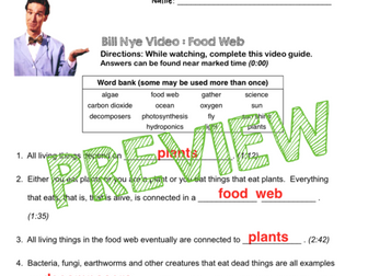 Bill Nye Food Web Video Guide Sheet - Pinterest Jun 15, 2016 - This 11 question worksheet provides a way for students to follow along with the Bill Nye Food Web video. The questions are all fill-in-the-blank. The video and worksheet cover the following concepts: plants, animals, decomposers, living things, food, scavengers, energy, photosynthesis. The worksheet...