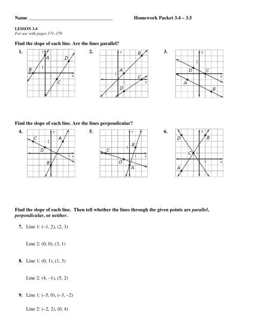 Solving equations involving parallel and perpendicular lines worksheet answers