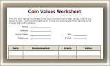 Coin Values Worksheet - CoinStudy Print the Coin Values Worksheet to list your coins and record their values. Print multiple sheets to inventory all of your old coins. Should you decide to sell... use the worksheet as an invoice and packing slip when sending coins through the mail to dealers. Coin Values Worksheet. Name: ____________________. Address: