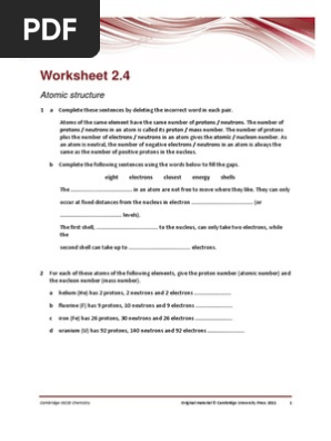 Atomic Structure Worksheet With Answer Key PDF | Beyond - Twinkl This Atomic Structure Worksheet with answer key PDF has loads of great activities to engage students with the atomic structure. Students can work through the card activities included, that will ask them to create the atomic structure, label and create a diagram. The PowerPoint is a fantastic resource that talks your students through the ... Chemistry Atomic Structure Worksheet [9QUNSC] Molar concentration Wikipedia Grade 9-1 GCSE Chemistry worksheets, past papers and practice papers for Edexcel, AQA and OCR You can find notes and exam questions for Additional math, Elementary math, Physics, Biology and Chemistry Atomic Structure of Class 11 All the objects around you, this book, your pen or pencil and things of nature such as rocks, water and plant constitute the matter of ... PDF Name Date Period - Richmond County School System Atomic Structure Worksheet List the 3 subatomic particles, their charges, masses and where in the atom they are located in the chart below: Describe how to determine the number of each subatomic particle in an atom below Fill in the chart for the elements below. Round all atomic masses to the nearest whole number: Draw an atom below and label Download File PDF Key Answer Structure Atomic Worksheet Worksheet Chapter 6: Liquids and Solids Worksheet Solve Atomic Structure study guide PDF with answer key, worksheet 1 trivia questions bank: Atoms, atomic spectrum, atomic absorption spectrum, atomic emission spectrum, molecules, azimuthal quantum number, Bohr's model, Bohr's atomic model defects, charge to mass ratio of electron, discovery of