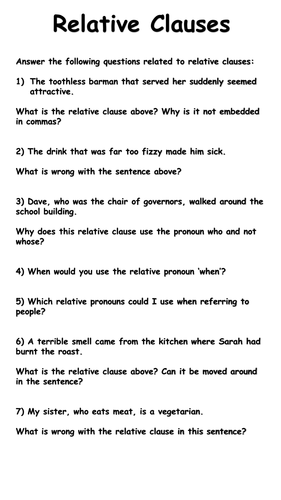 Relative Clause Worksheets - Deeper Thinking | Teaching Resources