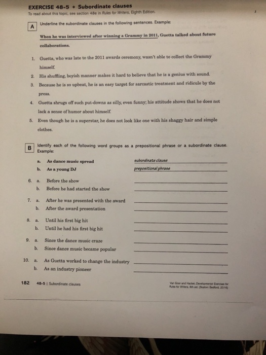 Solved EXERCISE 48-5 Subordinate clauses To read about this ...