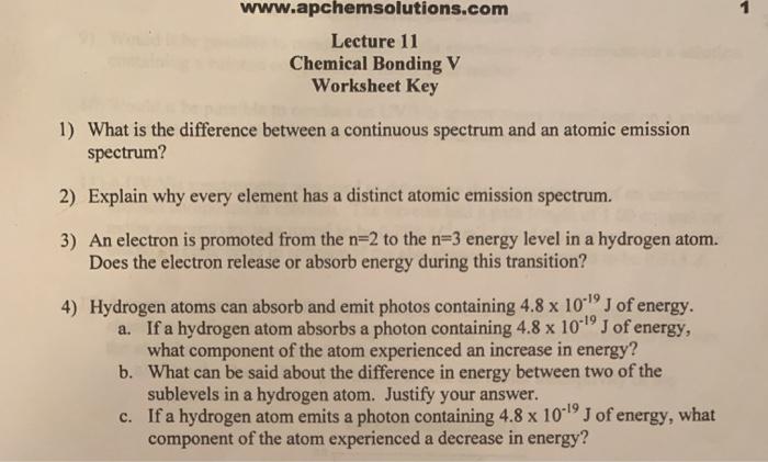 Atomic structure and chemical bonds worksheet answer key