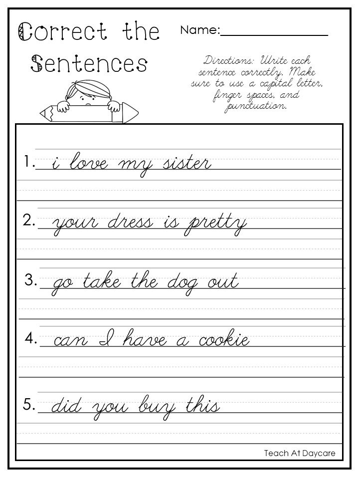 Complete sentences worksheet 1st grade. education.yourdictionary.com › for-teachers › firstFirst Grade Synonyms and Antonyms Worksheets - YourDictionary Use each section of the worksheet to teach a group lesson by completing them together and explaining the answers as you go. Take the worksheet a step further and ask kids to write an antonym for each word in the synonym section and a synonym for each word in the antonym section. Use the worksheet as a test. View & Download PDF › worksheets › second-gradeBrowse Printable 2nd Grade Complete Sentence Worksheets ... Building proper sentences is a crucial component of any successful essay, story, letter, or poem. It’s especially important in early grades when students are still learning how language works. Our 2nd grade complete sentence vs. fragments worksheets help kids identify problem areas in sentences and how to revise them. › sentencesSimple and Compound Sentences - Super Teacher Worksheets Determine which groups of words are complete sentences and which ones are fragments. Punctuation Worksheets. Learn to properly use periods, question marks, commas, and quotation marks. English-Language Arts Worksheets. Our worksheets cover all areas reading, writing, phonics, and spelling. Search Printable 2nd Grade Complete Sentence Worksheets Building proper sentences is a crucial component of any successful essay, story, letter, or poem. It’s especially important in early grades when students are still learning how language works. Our 2nd grade complete sentence vs. fragments worksheets help kids identify problem areas in sentences and how to revise them. Using 2nd grade complete ...