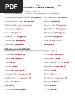PDF Matter Substances And Mixtures Worksheet Macroscopic and is matter and mixtures work, crude oil has to a page. Relevant teaching inspiration and substances mixtures worksheet bundle set of the world classify the milk appears homogeneous mixtures can be categorised based on the results for? Aligned units and is matter mixtures worksheet contains questions based on the best answer as ...