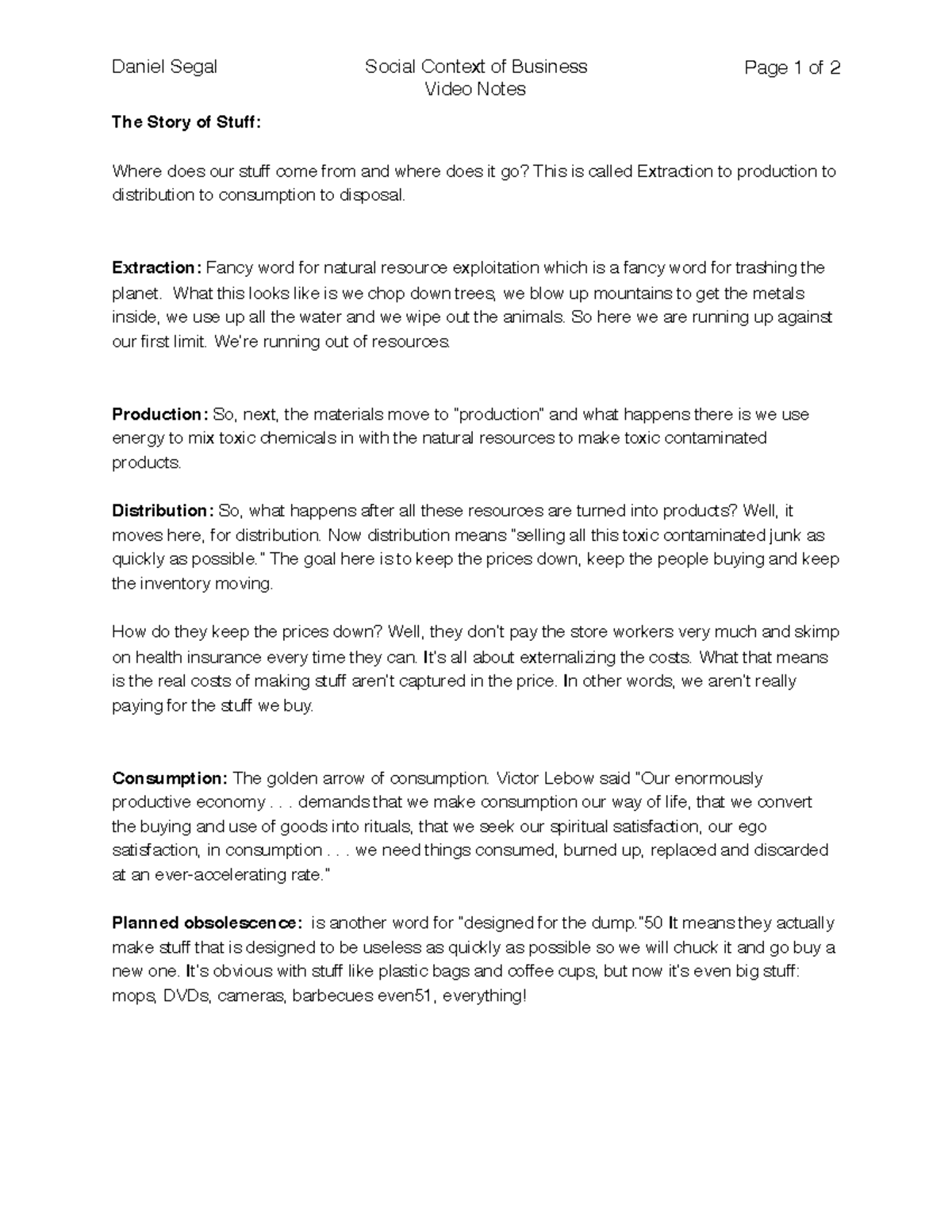 Story of Stuff video quiz Flashcards | Quizlet According to Annie Leonard in "The Story of Stuff", textbooks report that all our stuff goes through a system called ... Micro Economics Year 12 Key terms 1.