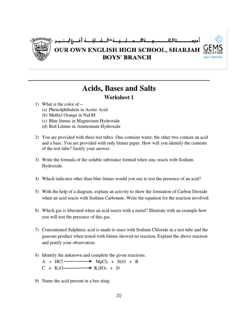 Chemistry acids and bases worksheet. Acids, Bases, & the pH Scale - Science Buddies We recommend checking if there is one available at your local high school chemistry laboratory before purchasing. ... For more information about acids, bases, and the pH scale, try this reference: Khan Academy. (2009, September 7). Arrhenius … Chemistry Help - Wyzant Lessons Content in this section of Wyzant Lessons has been curated by tutors, as well as by Chemtutor.com creator David Wilner. David Wilner is a native of Georgia, USA, born just before the end of WWII. Mr. Wilner is happiest when he is explaining things in science (pontificating), so it is natural that he has been a science teacher in high school and a teacher of chemistry at … Lifestyle | Daily Life | News | The Sydney Morning Herald The latest Lifestyle | Daily Life news, tips, opinion and advice from The Sydney Morning Herald covering life and relationships, beauty, fashion, health & wellbeing Water - Wikipedia Water (H 2 O) is a polar inorganic compound.At room temperature it is a tasteless and odorless liquid, nearly colorless with a hint of blue.This simplest hydrogen chalcogenide is by far the most studied chemical compound and is described as the "universal solvent" for its ability to dissolve many substances. This allows it to be the "solvent of life": indeed, water as found in nature …