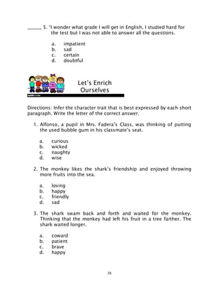 44 identifying character traits worksheet