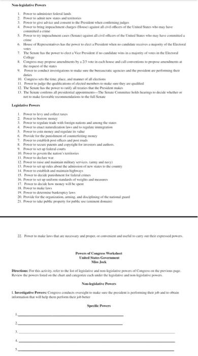 38 powers of congress worksheet