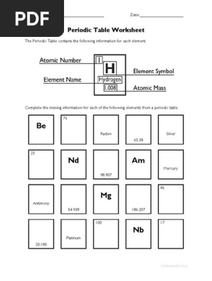 Free PDF Chemistry Worksheets To Download or Print - ThoughtCo 30.05.2019 · Color Printable Periodic Table - Pretty much everything you need that can fit on a page and still be readable. Color table with atomic numbers, element symbols, element names, atomic weights, periods, and groups. [2013 Edition] [2012 Edition]Black/white Printable Periodic Table - Black/white table with atomic numbers, element symbols, element names, atomic …