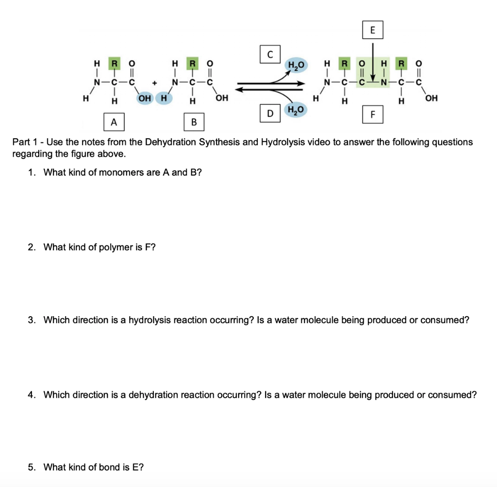 Dehydration synthesis and hydrolysis worksheet. Dehydration Synthesis And Hydrolysis Teaching Resources | TPT This is the second worksheet that I give my students on dehydration synthesis and hydrolysis (the first worksheet is called Making and Breaking Polymers). They always struggle with these two reactions. This worksheet dives into more detail about what happens during each reaction and how water is involved. Dehydration Synthesis And Hydrolysis Vocabulary Worksheet Answers Become part b are hydrolysis vocabulary worksheets and answer: carbon as a polar covalently bonded carbons. Also how is vocabulary and dehydration hydrolysis answers worksheet. Amino acids can be linked into long chains through condensation reactions. Dehydration Synthesis or Hydrolysis - Printable - PurposeGames.com Dehydration Synthesis or Hydrolysis - Printable Download and print this quiz as a worksheet. You can modify it to fit your needs before you download. This is a printable worksheet made from a PurposeGames Quiz. To play the game online, visit Dehydration Synthesis or Hydrolysis Download Printable Worksheet Please note! Solved BIO 181 Macromolecules and Dehydration/Hydrolysis - Chegg Transcribed image text: BIO 181 Macromolecules and Dehydration/Hydrolysis Reactions Worksheet E с HO O=0 -O-I -- H OHH н OH H OH H D HO F А B Part 1 - Use the notes from the Dehydration Synthesis and Hydrolysis video to answer the following questions regarding the figure above. 1. What kind of monomers are A and B? B= Hgroup А A= OH group 2.