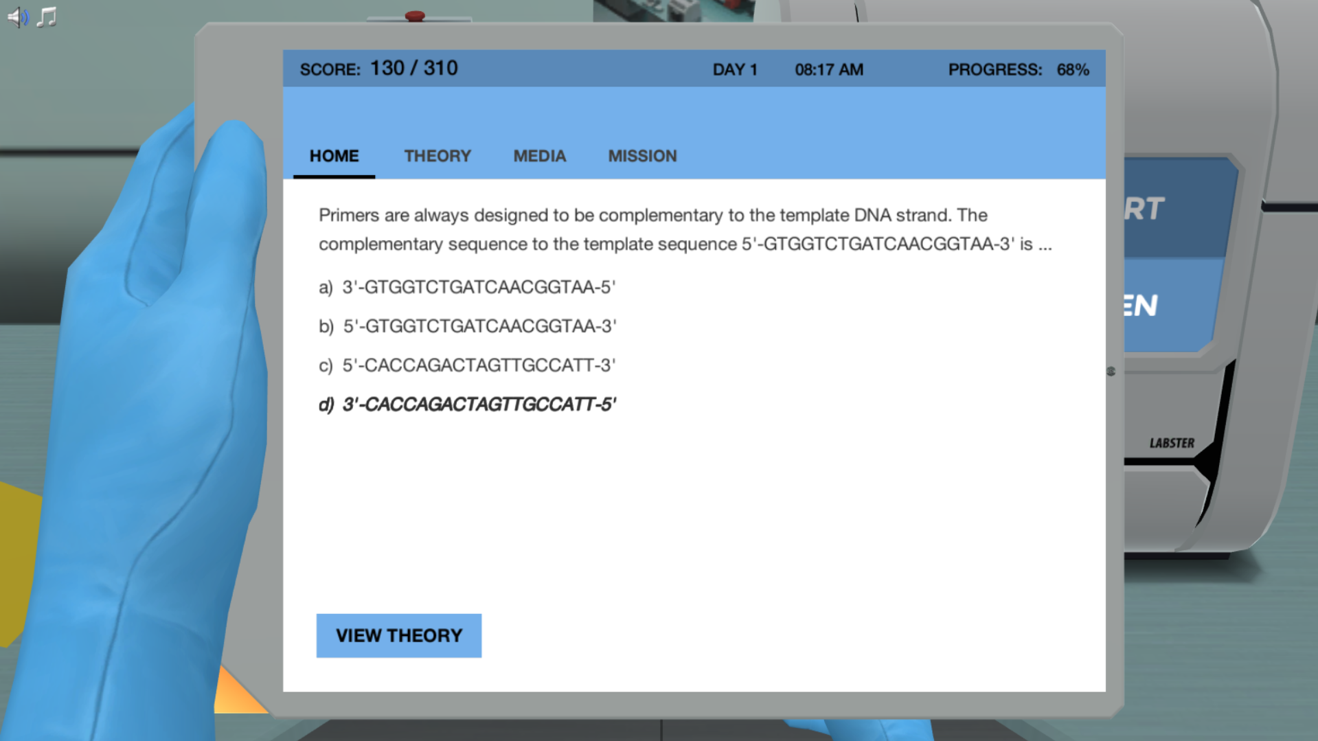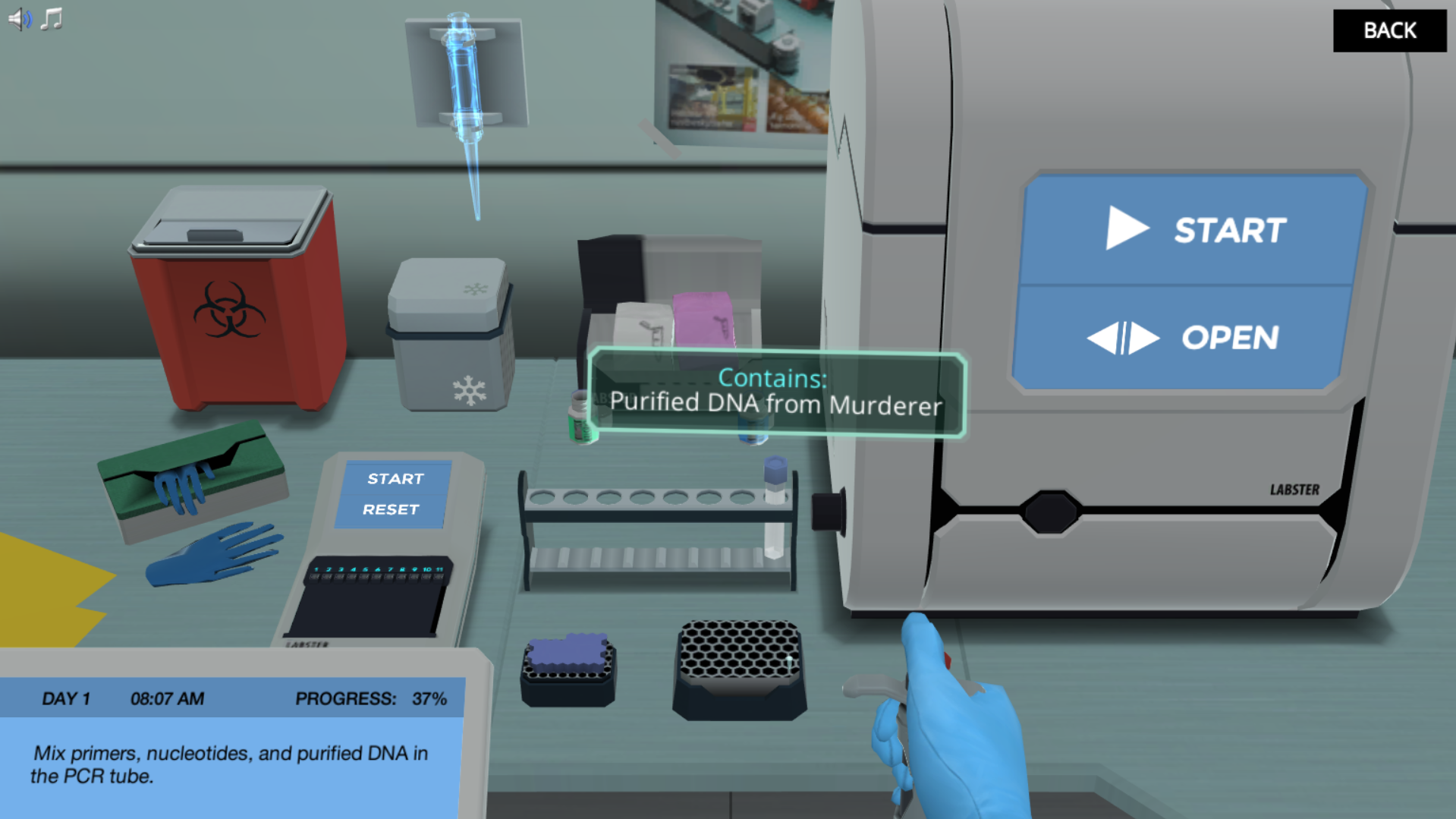 Polymerase Chain Reaction Virtual Lab - Labster By using a PCR kit, a thermocycler, and the purified DNA from the crime scene, it is up to you to mix the correct reagents and perform the PCR experiment. See the structure of DNA and its replication up close. A 3D animation will show the PCR experiment at the molecular level, illustrating the structure of DNA and its replication.