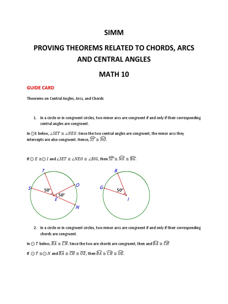 10 Grade 10 SIM Proving Theorems Related To Chords Arcs and ...