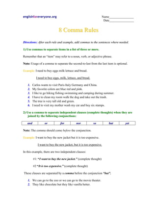 › worksheet › articlePerfect Punctuation: Using Commas Correctly | Worksheet ... Learners will take a deep dive into comma use in this punctuation worksheet. Students will review a list of places where they would use commas, along with examples, before adding them to 14 practice sentences. Designed for fourth and fifth graders, this grammar and mechanics worksheet supports ...